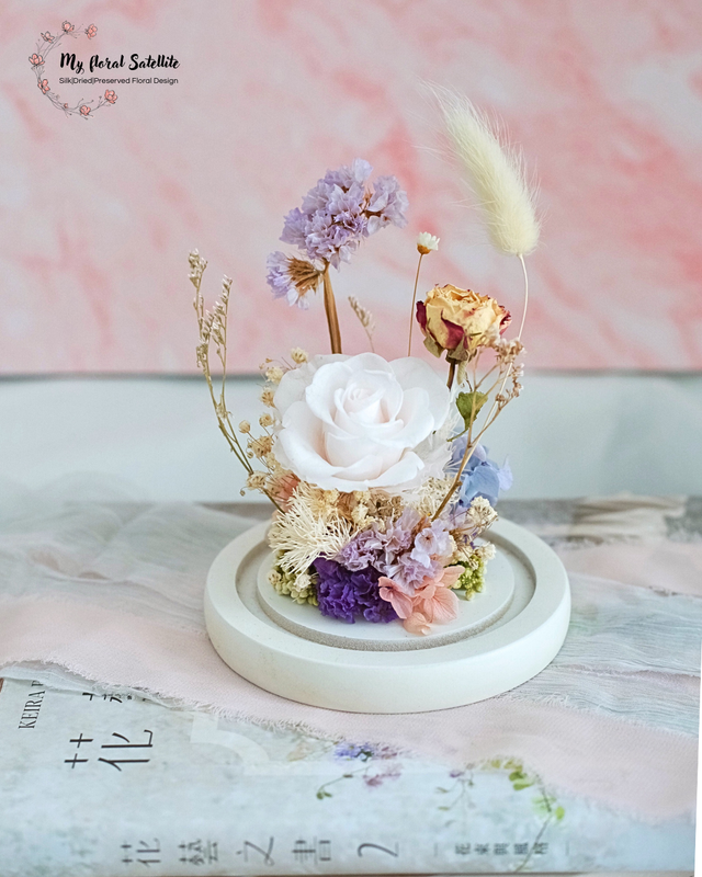 Each piece is carefully hand-arranged using preserved and dried blooms, designed to evoke calm and quiet wonder.